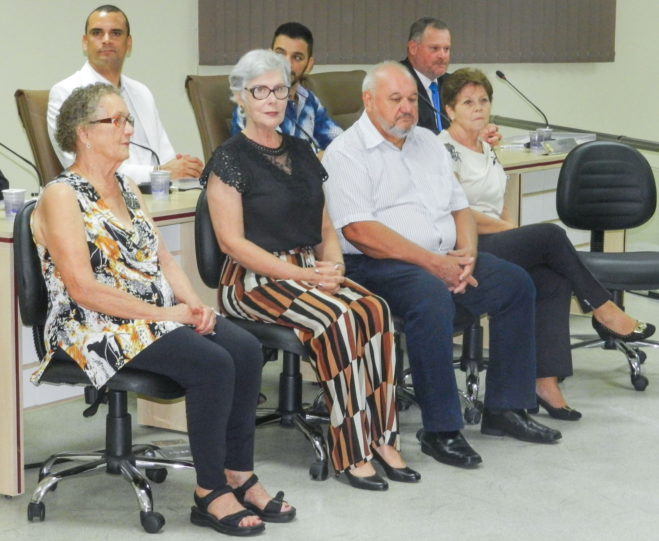 Posteriormente, os Ex-Presidentes em convívio subiram ao plenário para receber a homenagem. Neste ponto, a sessão passou a ser presidida pelos mesmos, que se revezaram na condução da solenidade. Hélio de Souza deu início aos trabalhos, sendo substituído pelos senhores Henrique Jesus Ramos da Silva, Thiago Silva, atual vice-prefeito e Ex-Presidente da Câmara, Luiz Roberto Azzini e Alex Siloto.