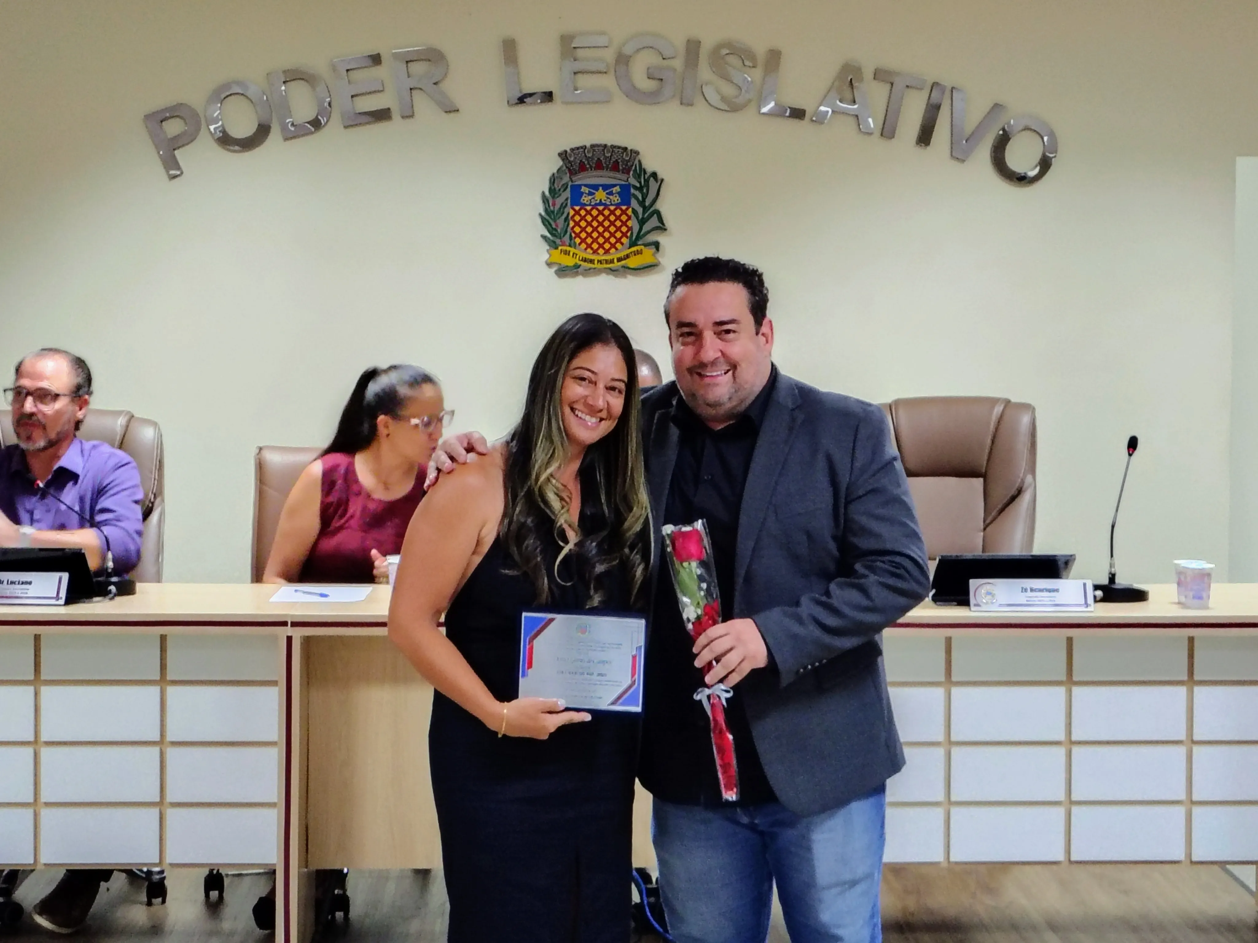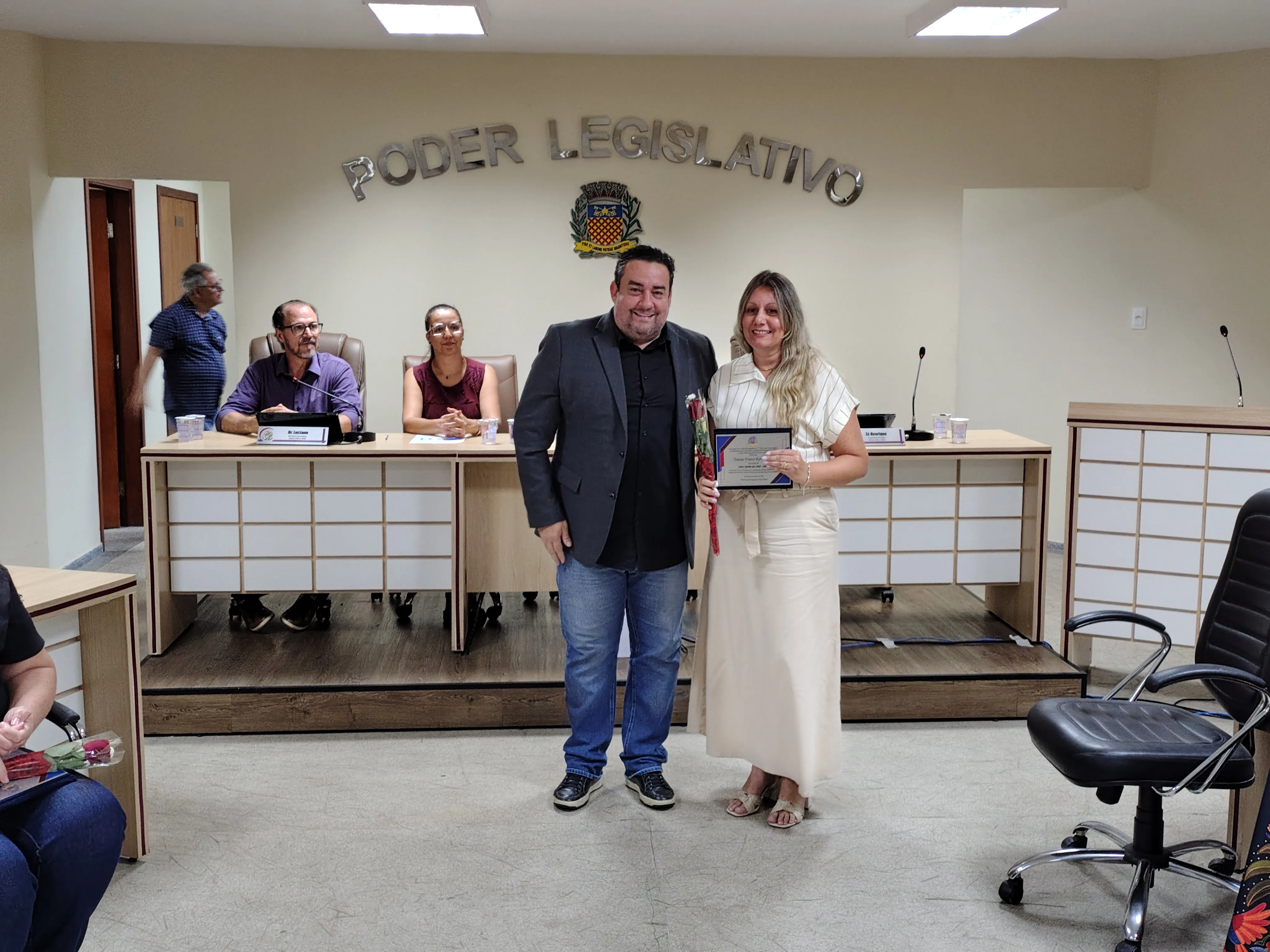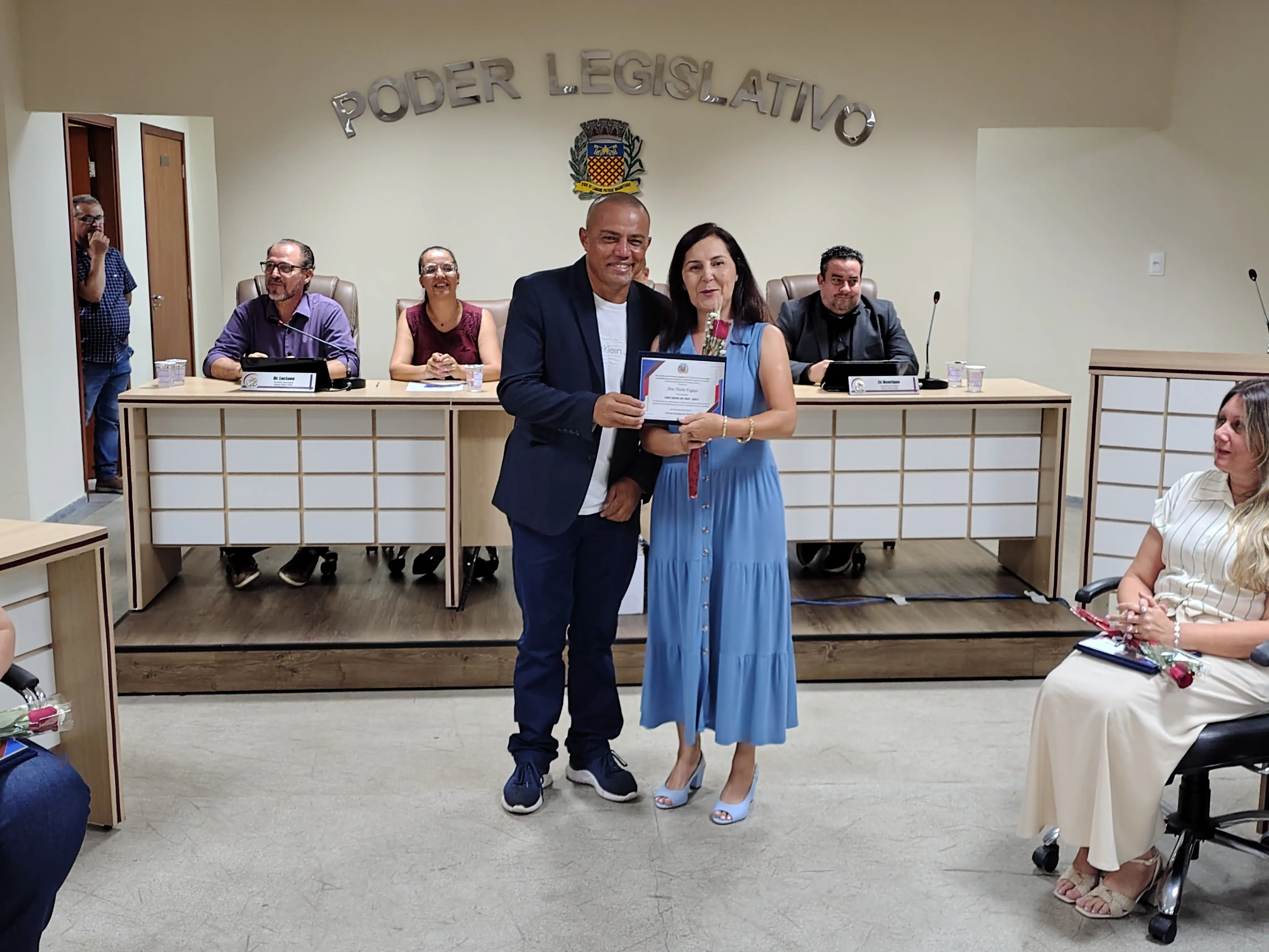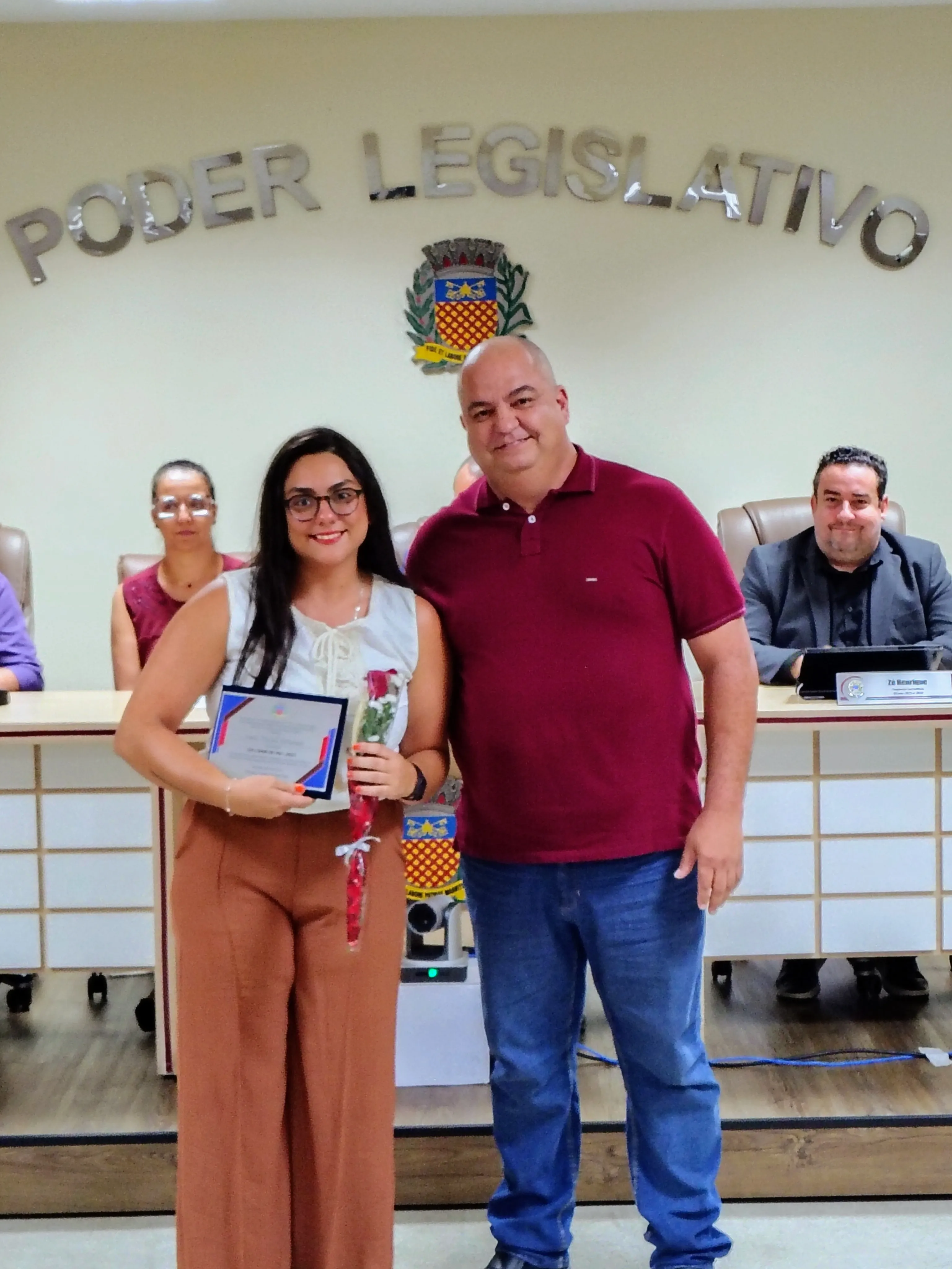 A solenidade foi conduzida pelo vereador Adriano Vitor, presidente da Casa. Além dele, a mesa central foi composta pelos vereadores Zé Henrique Pereira e Luciano Mazzonetto e pela secretária de Educação, Samanta Alves Almozara Bontorim.