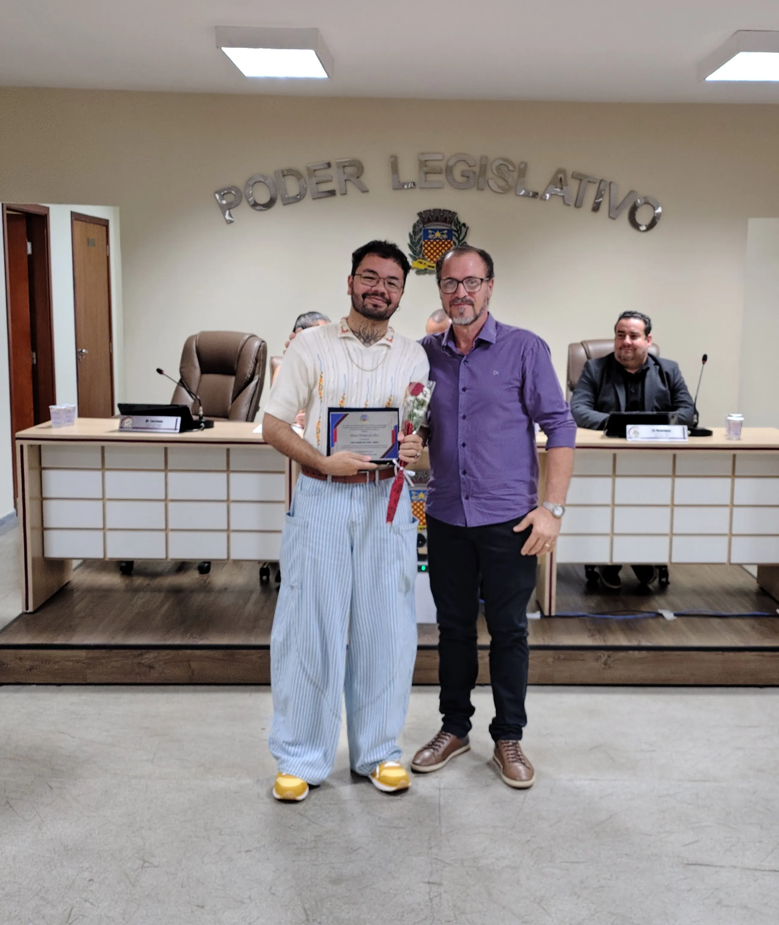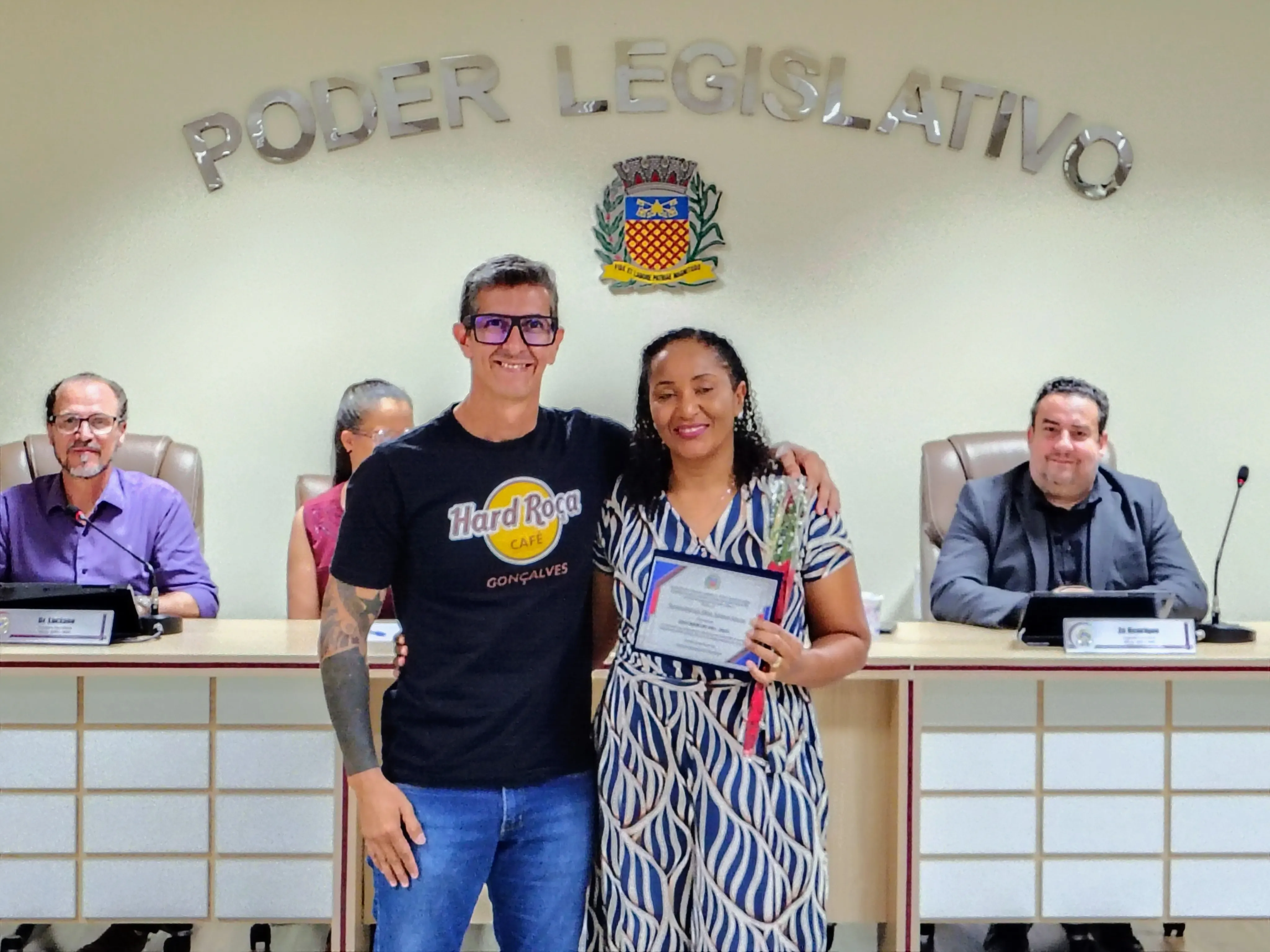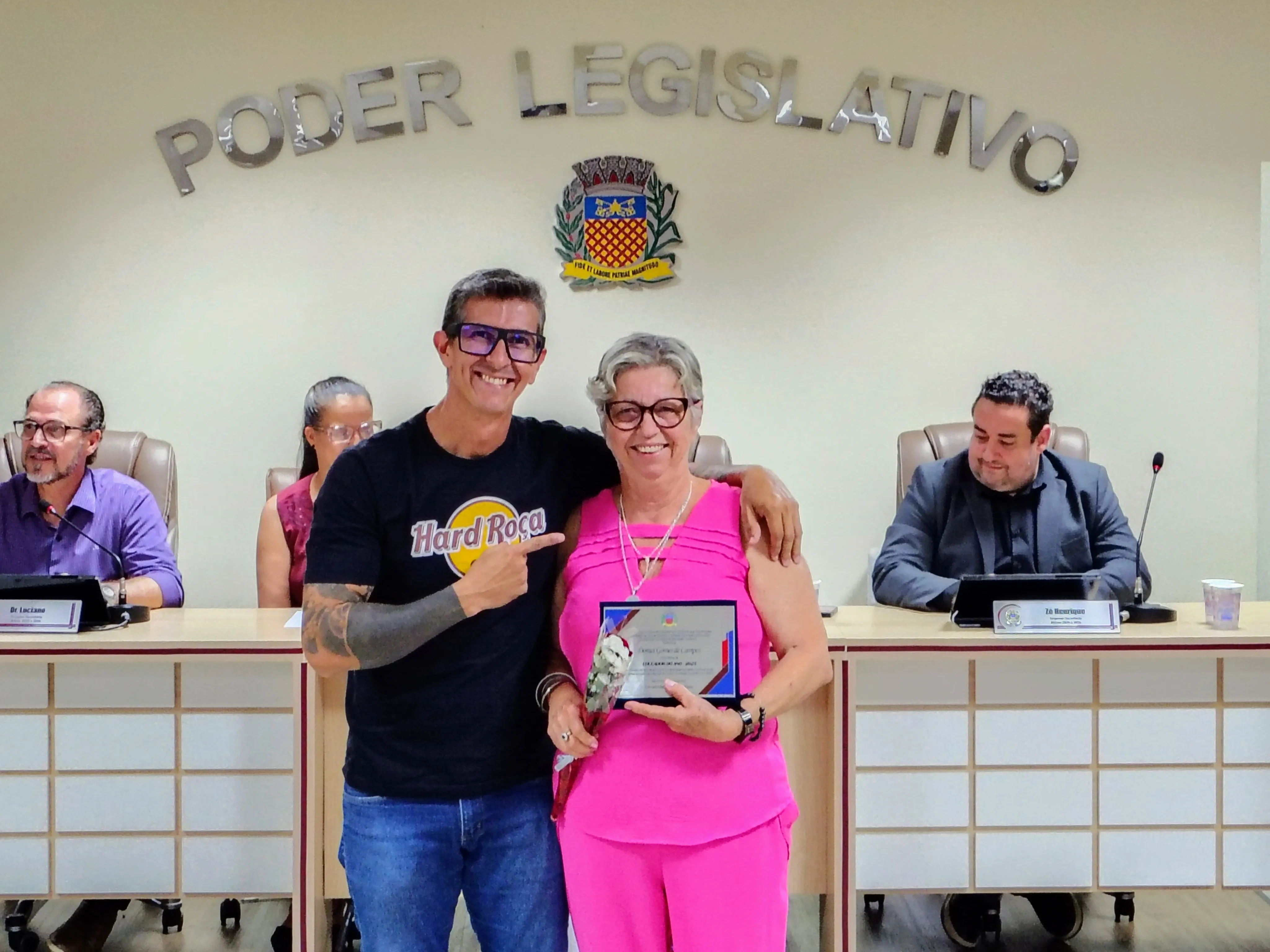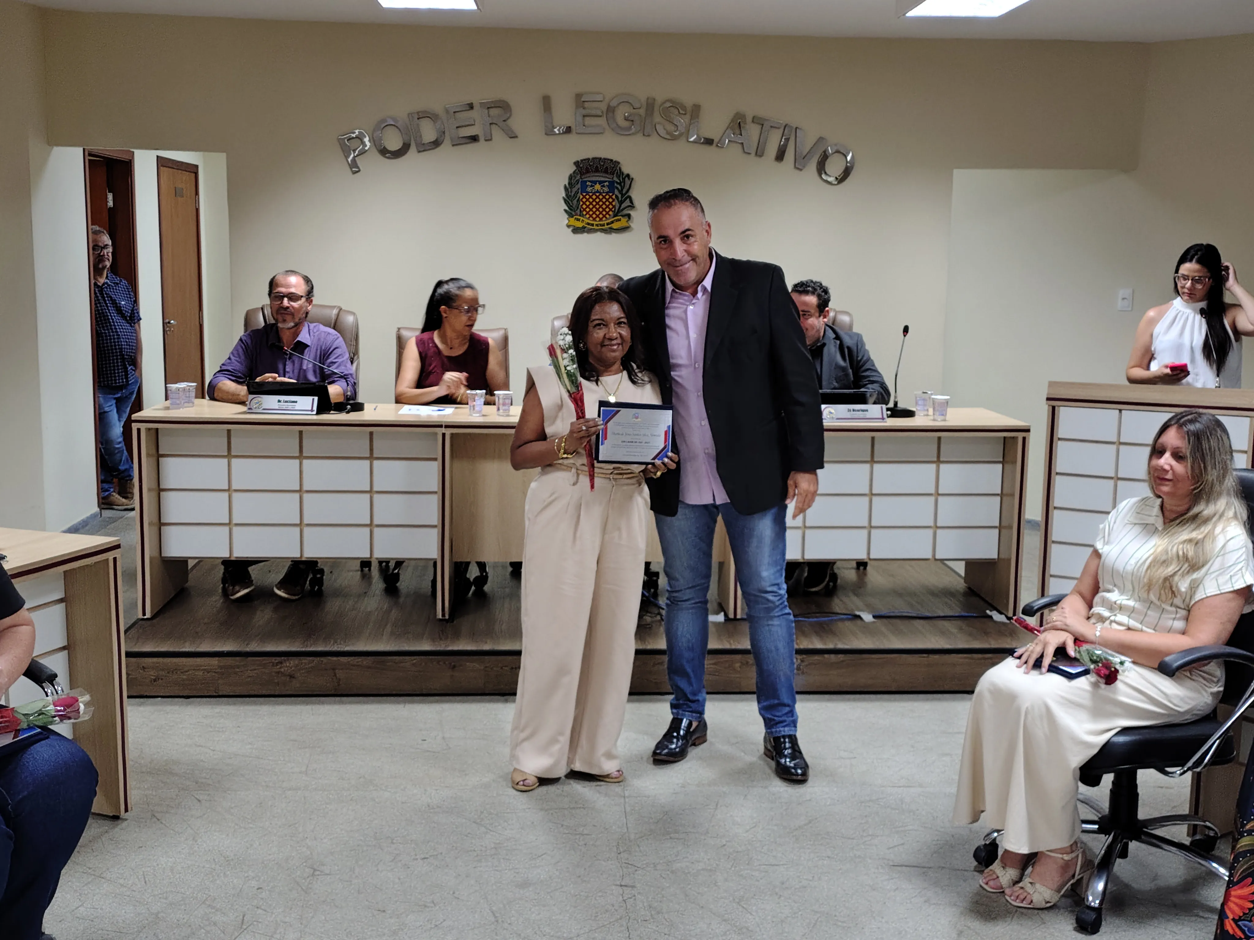 A solenidade foi conduzida pelo vereador Adriano Vitor, presidente da Casa. Além dele, a mesa central foi composta pelos vereadores Zé Henrique Pereira e Luciano Mazzonetto e pela secretária de Educação, Samanta Alves Almozara Bontorim.